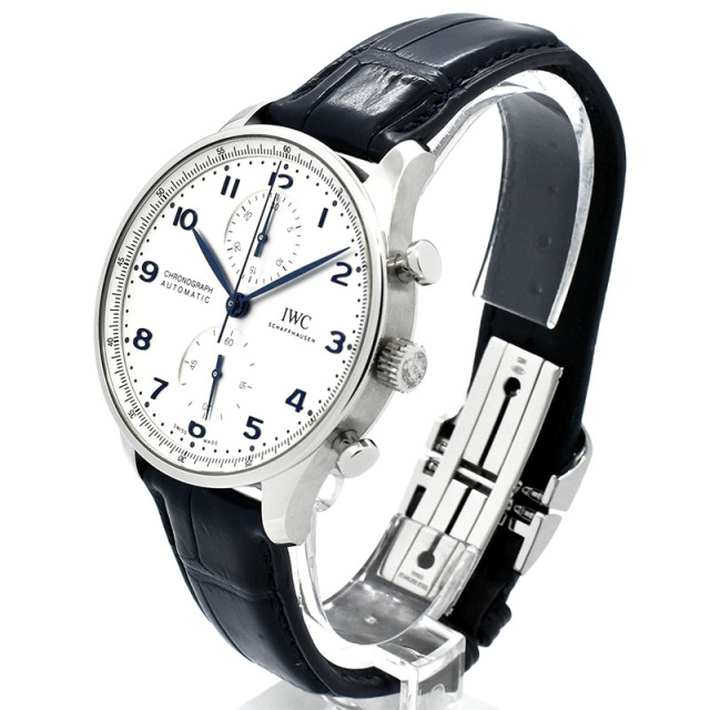 岡山市のお客様より高級時計のお買取りをさせて頂きました。ブランド時計の強化買取を実施しており高額買取を目指し、岡山県で一番の高額お取引を目指し日々奮闘しております。今回お持ち込み頂いたIWC ポルトギーゼ クロノグラフ IW371605 シルバー 青針 41mm は日本国内の最高級ブランド時計の人気商品。中古品であっても、付属品が揃っていたら値段も上がります。様々な種類がありますが当社では取り扱いが豊富ですのですべてに対応しておりもちろん状態不問でもお受けできるブランド時計となります。専任バイヤーが貿易や市場と何度も値交渉を行いお買取りしお客様にも満足して頂けました。購入した価格より高くお取引できるブランド時計、頂いたIWC は是非当社でご売却を!!是非ご来店ください。絶対の自信がありますので体感してください!!!!