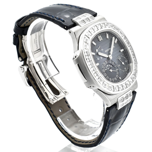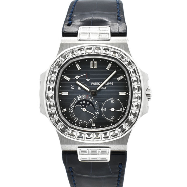 岡山市のお客様より高級時計のお買取りをさせて頂きました。ブランド時計の強化買取を実施しており高額買取を目指し、岡山県で一番の高額お取引を目指し日々奮闘しております。今回お持ち込み頂いたパテックフィリップ PATEK PHILIPPE ノーチラス プチコンプリケーション バゲットダイヤ 5724G-001 ブラック・ブルー 40mm 18KWG は日本国内の最高級ブランド時計の人気商品。中古品であっても、付属品が揃っていたら値段も上がります。様々な種類がありますが当社では取り扱いが豊富ですのですべてに対応しておりもちろん状態不問でもお受けできるブランド時計となります。専任バイヤーが貿易や市場と何度も値交渉を行いお買取りしお客様にも満足して頂けました。購入した価格より高くお取引できるブランド時計、頂いたパテックフィリップは是非当社でご売却を!!是非ご来店ください。絶対の自信がありますので体感してください!!!!