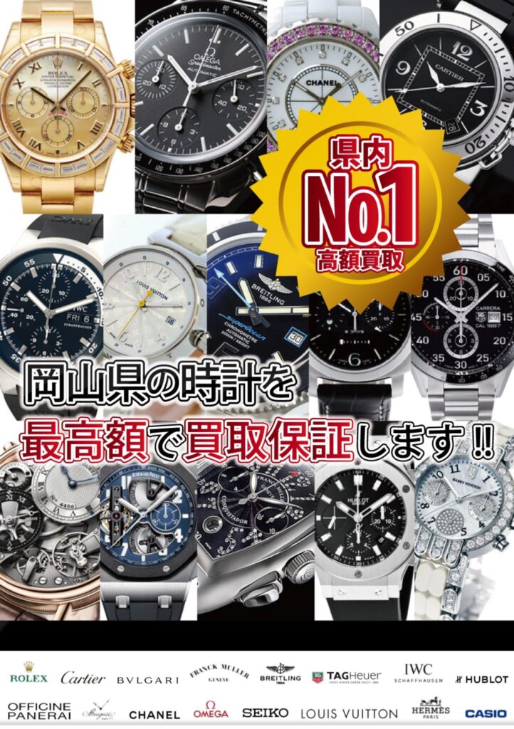 岡山市のお客様からロレックスのデイトナ超高価買取させていただきました!相場高騰中につきお申し込み多数のロレックス。当店は時計買取も自信あり。他店をまわってみてからでも構いません。必ず高額買取をお約束いたします。ロレックス以外のブランド時計も買取強化中です♪岡山で時計買取は最高額ドットコム東岡山店までお問い合わせください。