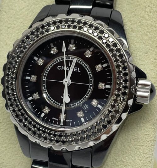 シャネルのJ12ブラックダイヤ!!レデースモデルも他社様圧倒の高値でお客様も納得の高値買取となっております。(岡山本店)