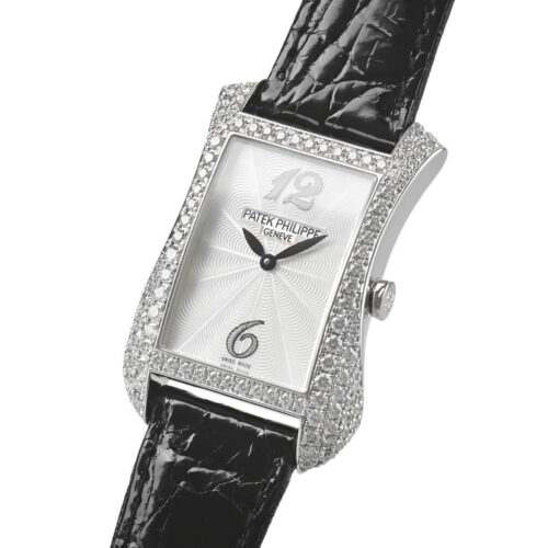 - ゴンドーロ セラータ (4972G-001) 18Kホワイトゴールドのケースに煌めくダイヤモンドが配された、アール・デコ様式の美学を体現する逸品。